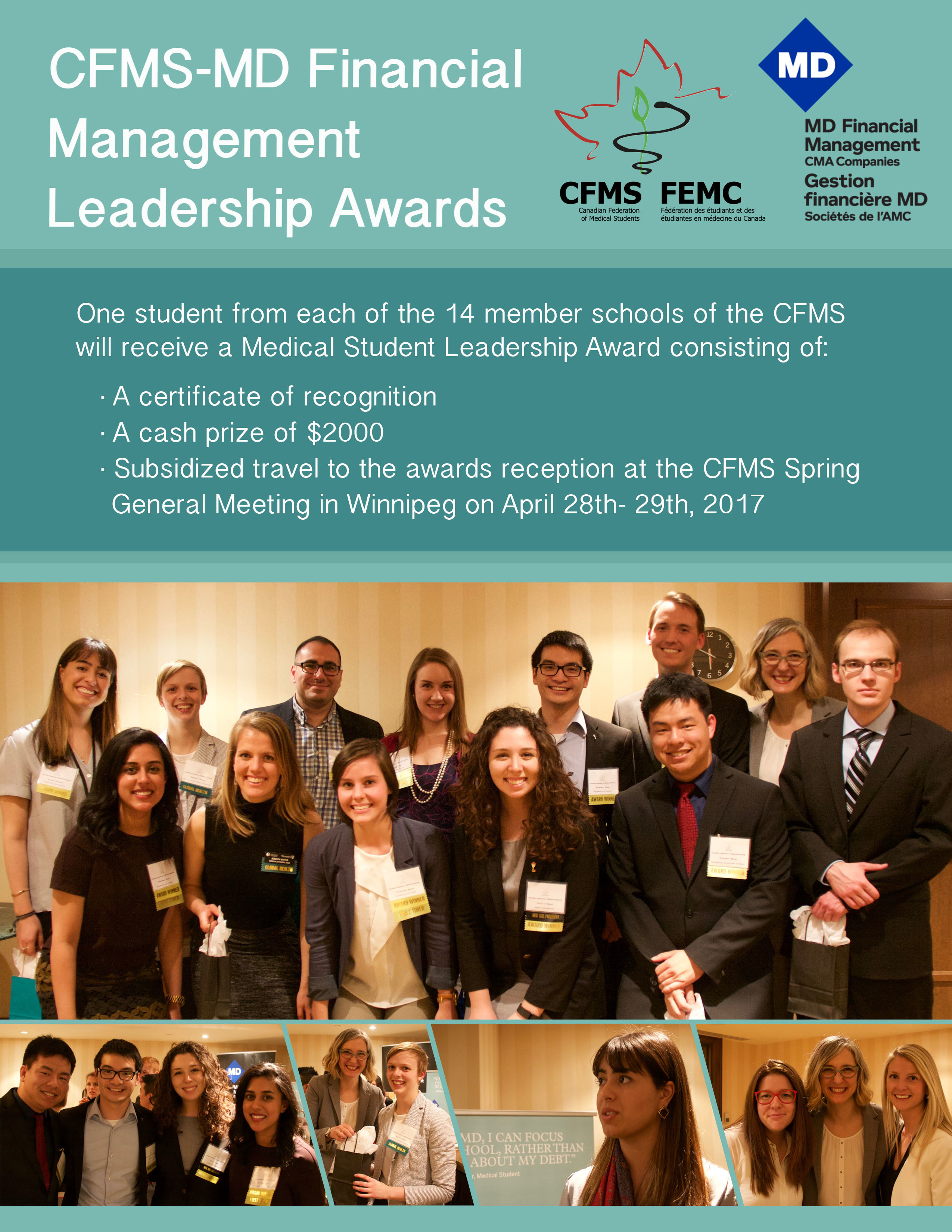 In partnership with MD Financial Management, the CFMS hosts an annual leadership award.