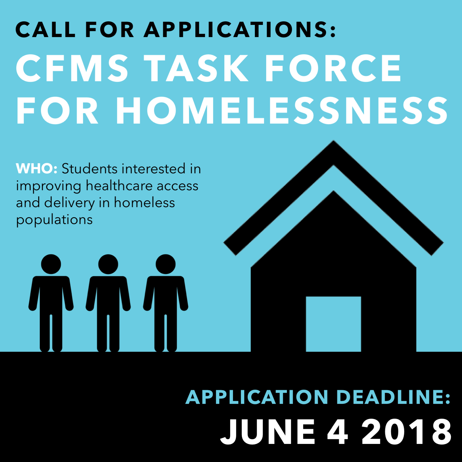 Applications are now open for the CFMS Task Force on Homelessness. This is a great opportunity to contribute to a nationwide medical student effort to improve healthcare access and delivery in homeless populations.
