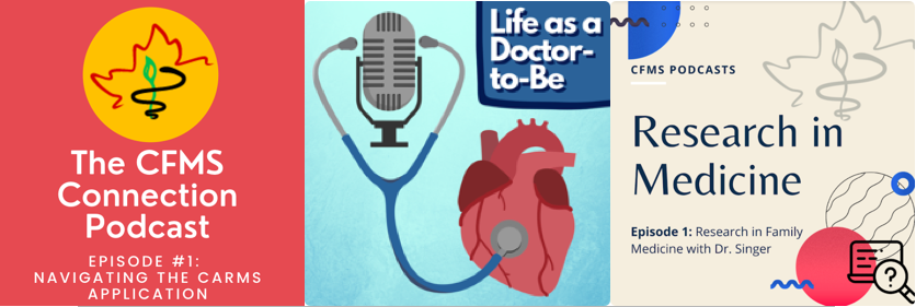 The CFMS is excited to announce the release of our CFMS Podcast Series. Our goal is to connect, support and represent our membership as they learn to serve patients and society through a new podcast platform. Our CFMS Podcasts is a collection of three separate series - CFMS Connection, Life as a Doctor To Be and Research in Medicine podcast series.
